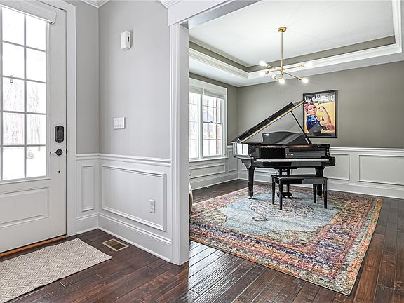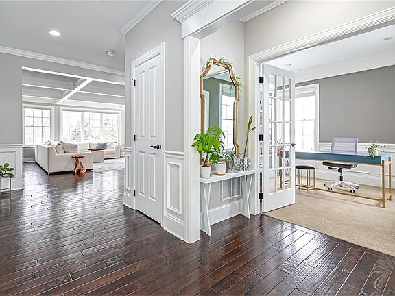 This stunning custom Weaver built custom home offers a rare combination of elegance and modern convenience. The sought-after floor plan features an open-concept kitchen and family room. Elegant touches such as crown molding, wainscoting, hand scraped hickory hardwood floors and a coffered ceiling in the family room are highlighted. The center island kitchen with breakfast area offers granite countertops and tile backsplash. Private 1st floor office with French doors. Upstairs, the luxury owner’s suite offers a jet tub, glass shower and large walk-in closet with organizer. Spacious bedrooms with the 2nd bedroom offering its own an en-suite bath. The lower level boasts a game room with brick fireplace, wet bar, powder room, gym/fifth bedroom, and walk-out doors to the back yard. Outside boasts three private rear patios overlooking the private.53 acre yard and preserve. Smart home automation enhances daily living with motorized blinds on the first floor and automated lighting system.