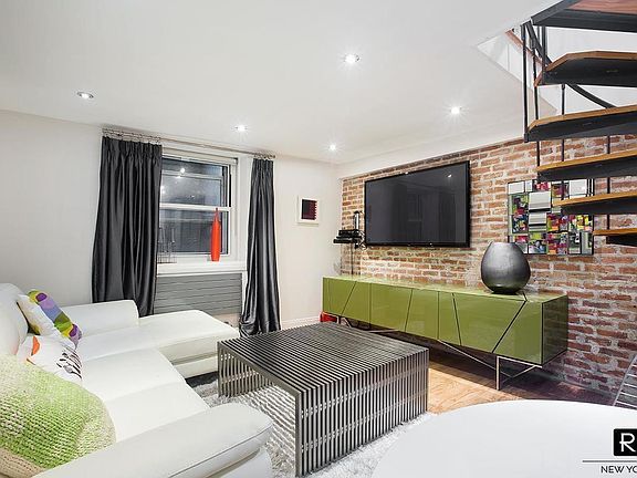 Ready to be sold! Also available for rent for $3500 Live in the best block of the Village! Seconds from Washington Square Park! The perfect one-bedroom duplex. This Modern, quiet and cozy ground level unit has a floor-plan dividing the living space amongst three floors. With Custom built closets on the main level, covered by Stunning Italian Lappato Porcelain Tiles. Stainless steel appliances in the open eat-in kitchen and an ultra-modern bathroom. Stepping down into the sunken living room reveals trend and well-maintained space with a gorgeous brick wall. The bedroom, outfitted with the wall through air conditioning, has space for any size bed, dresser, and even an office desk. The Building; 211 Thompson Street a boutique coop building situated on a tree-lined block in the heart of Greenwich Village, one of New York City's most vibrant neighborhoods.211 Thompson Street has a part-time doorman, live-in super and laundry on every floor. There is also an elevator and double door security in the front of the building. The Neighborhood; If you are looking to just stand around a neighborhood and cross your fingers for a celebrity sighting through sheer luck, Greenwich Village might be your safest bet. One of the city's most popular neighborhoods for the rich and famous, you are sure to see one of the many resident stars going on with their daily lives throughout the Village. You may bump into Julia Roberts, Leonardo DiCaprio, Rosie O'Donnell, Sarah Jessica Parker among many others having brunch nearby. The building is surrounded by world-renown cafes, restaurants, and music venues. NYU, Washington Square Park, supermarkets and multiple subway lines are all less than three blocks away and only short minutes away from the West Village, Soho, Tribeca, East Village, and Union Square. No assessments planned. The building has just completed and paid an extensive modern renovation of the lobby and hallways.