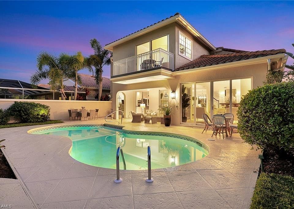 Discover a rare opportunity to own a turnkey 4-bedroom, 3-bath single family home in the exclusive Wyndemere Country Club. This stunning two-story residence, spanning just under 5,000 square feet of indoor/outdoor living space, has been impeccably updated and professionally styled with timeless sophistication. Step inside to soaring ceilings and an abundance of natural light streaming through expansive walls of sliding glass doors. On the main level, elegant formal living and dining areas transition to the pool deck, with covered outdoor living and open dining areas for both intimate gatherings and grand entertaining. Private and serene, offering beautiful views of the #3 green of the white course. A golfer’s dream. The open kitchen family room features sleek granite countertops, a generous center island, and premium stainless-steel appliances with a built-in wet bar. The primary suite is a true retreat, with a private balcony and a stunning view of the pool and golf course. Two ensuite guest rooms and a versatile third that could be used as an office, den or fourth bedroom. Every detail has been thoughtfully curated throughout the home. Wyndemere, an award-winning 2025-2026 Platinum Club of America, offers unmatched amenities, including 27 holes of Arthur Hills golf, 10 HarTru tennis courts, pickleball courts with 165 stadium seating for pickleball pro exhibitions, active bocce teams, full croquet, a resort style zero entry pool, golf simulator, putting greens, driving ranges, 2 pro shops. A full-service spa, salon and state of the art fitness center with a full schedule of group exercise classes and personal training. Enjoy formal dining, as well as indoor/outdoor casual dining at the Tiebreaker, and a lively social schedule of events/parties at the club. Wyndemere, known for its friendly and welcoming membership, is ideally located within minutes to 5th Avenue world class dining, shopping and the spectacular sugar sand Gulf beaches. Live everyday like you are on vacation and come enjoy this amazing lifestyle!