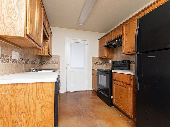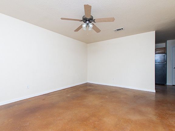 Step into this charming home, where concrete-stained flooring and ceiling fans throughout bring style and comfort together seamlessly. The kitchen is designed for convenience, featuring custom cabinets, essential appliances, and a handy pantry for all your storage needs. Each room offers a comfortable amount of space, complete with built-in cabinets for extra organization. The primary bedroom serves as a cozy retreat, equipped with a double vanity, a versatile shower/tub combo, and additional cabinetry for easy storage. Outside, enjoy the privacy of a fully fenced backyard, perfect for outdoor relaxation.