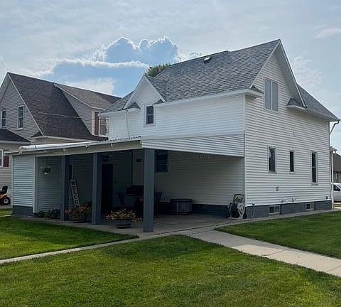 This is a 3 bedroom 2 bath home located in quiet neighborhood, just 1 block from main street and Rose Bormann park. New plank flooring in the kitchen, main level bathroom, and laundry room. Home also features a covered patio and additional storage within two other porches. Main level bath remodeled in 2025. Detached 3-stall garage along with a carport for additional parking.