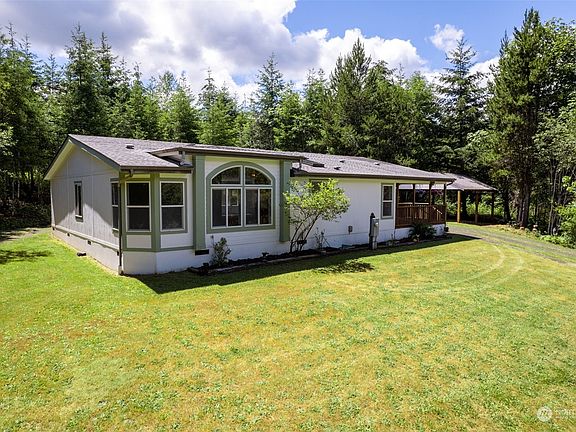Beautiful 6 ACRES! Discover this secluded property featuring a 2,192 sf home with 3 bedrooms, 2 bath w/ split floor plan. This home lives large with spacious family & living room w/ vaulted ceiling, and an abundance of windows. The inviting front-covered porch has a country charm, making it a great place to take in the peaceful surroundings. You will enjoy the fruit trees & your own trail through the forest. Plenty of room to build your dream shop! There is a carport, 2 outbuildings & RV parking. Back property line borders Green Diamond. Entrance to Isabella State Park is right down the street. Ideal location for easy access to Hwy 101 & only 15 minutes to Olympia.