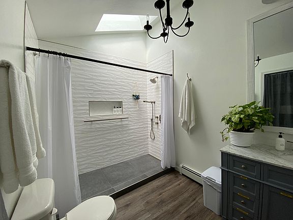 Large ocean view apartment for rent. Giant master suite with 1.5 baths on 3 levels, approx 1200 sq feet. Great downtown location. 180 degree views of harbor and downtown from every room. Private location with excellent sun exposure to beat the winter blues. Easy walk to restaurants, schools, brewery, harbor, shops. Master bedroom is entire top floor of home attached to a remodeled walk-in shower in attached bathroom with endless hot water. Think "Penthouse Apartment" with private decks, sitting area, electric fireplace and three large closets. Main floor features wrap around deck with views, gourmet kitchen, living area with pellet stove, dining nook with views and half bathroom for guests. Kitchen is equipped with high end appliances, butcher block counter top, gas range, triple sink, walk-in pantry and stand up freezer. Also features full laundry room with newer appliances. Access to three spectacular decks, garden beds and yard. Yard is not fenced. No garage. Some sheltered outdoor storage space provided. Renter pays oil, propane & electric. Owner pays water/trash. No smoking. Pets upon approval with additional pet fee. $25/mo per pet monthly and one time non-refundable $300 pet fee No parties or extended overnight guests. Available Sept 1st, possibly sooner. 9 month lease available with potential option to renew into longer term lease. More pics/videos upon request. Can be rented fully furnished or unfurnished Limited parking. 2 off street parking spots provided for small/medium cars only. One larger vehicle can be parked on street but only three cars allowed per lease.
