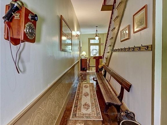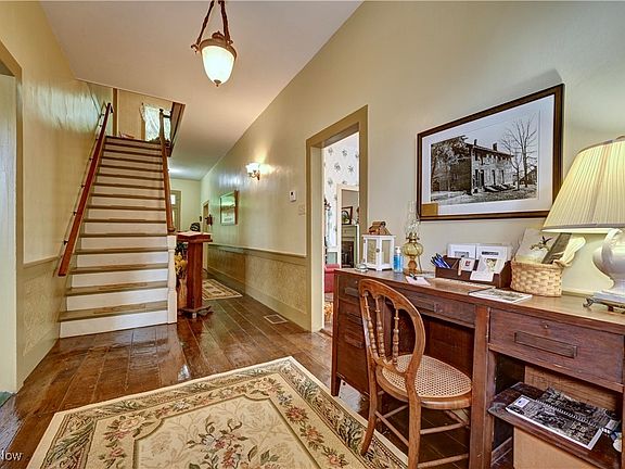 From the rolling hills of Tappan Lake, sits a quaint town called Deersville. Nestled in downtown Deersville, you will find this historic home which is placed on the National Register of Historic Places. Whether you are looking for an investment property as an AIR BNB-vacation rental, primary residence or corporate retreat, this historic home has it all. This is the perfect place to spend a weekend or a place to reconnect with friends. Located just minutes (right over the hill) from Tappan Lake Beach. Also minutes away from several public hunting and wildlife areas. Walk into the front door to an open staircase and go back in time to the ambiance of long ago. The main floor includes a long hallway entrance foyer, living room, family room with gas fireplace, dining room, kitchen, master bedroom, full bath and laundry, high ceilings. Almost all furnishings in every room are included in the sale, a few personal items will not convey. The second floor has 5 full size bedrooms and 3 full baths. Steps to the attic, which could be finished for additional space and include bathroom and kitchen, just needs completed. Electric average $55/month. Right across the street from the Deersville General Store, The Deersville Community Players Theatre, minutes from the The Dennison Depot Railroad Museum the Uhrichsville Waterpark, the Warther Wood Carving Museum, Amish Country and multiple wineries. The Tappan Marina recently was recently renovated. Don't let this opportunity slip away, call me today for your private tour.