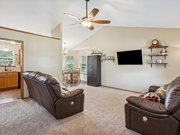 Don't miss this rare opportunity to snag a beautiful home nestled in the heart of Colwich! This 3 bedroom, 3 bath, 2 car garage home with a partially finished basement has fantastic floor plan. On the main level, step into the airy living room with vaulted ceilings. All appliances remain in the kitchen. The dining room leads into the backyard where the swing set and shed will remain. The primary bedroom is nicely sized with double closets and an en suite bath recently updated with granite countertops. A second bedroom, laundry room, and plenty of linen storage round out the main floor. Downstairs, a third bedroom and bathroom have been finished. The rest of the basement is unfinished and provides endless opportunity. The pond and walking paths across the street provide a tranquil, idyllic lifestyle in small town USA. The two hose spigots outside are connected to the irrigation well; the rest of the house is on city water. Did I mention that it's eligible for 0 down financing with a USDA loan?! Welcome home!