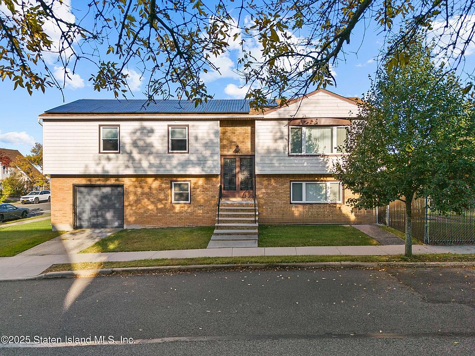 Introducing this extra-large broadside hi ranch corner property located at Arden Heights. This home offering above ground 2 levels; 4 bedrooms 2.5 bath with lot size 112x42; building size:52x27. Conveniently closed to Costco, Staten Island Mall, Atrium Mall, restaurants, parks and Korean War Parkway. 1st floor features: kitchen/dining combo, family room/entertaining room, full bath, 1 bedrm , laundry/utilities room, built-in garage, sliding door to the yard. 2nd floor features: kitchen, formal dining, living room, full bath updated in 2023, master bedroom with 1/2 bath, 2 additional good size bedrooms. Don't miss the chance to own 2 side yards!! Perfect for entertaining and gardening. Note: roof 2020; hot water heater 2018; furnace 2020; solar in 20 years lease, 10 years remaining. Don't miss the opportunity, Will Not Last!