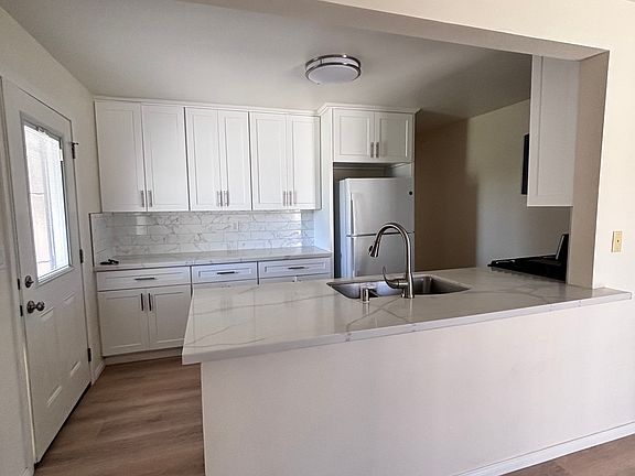 Oxnard - Single story, two bedroom, one bath house! Recently remodeled single story, two bedroom, one bathroom house with one car garage next to unit. Newer refrigerator, microwave, range, and dishwasher included in highly updated kitchen. Kitchen has white shaker cabinets and Quartz countertops. Wood-like laminate flooring throughout, kitchen open to living room area. Mirrored closet doors in bedrooms. Coin operated laundry room on site. Trash included. No pets. No smoking. Available now! Month to month lease.