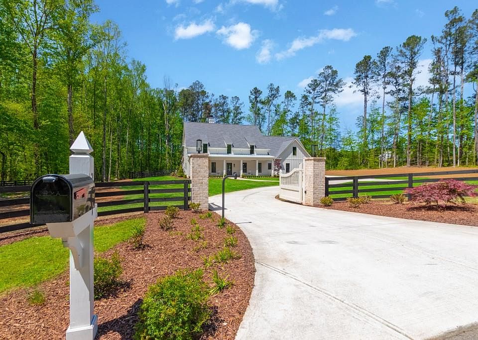 Stunning gated farmhouse custom built by Jason Hipps Homes perfectly situated on 2 acres! Just over the Milton line into sought after East Cherokee County. Timeless open floor plan features 10ft ceilings on main, formal dining room with board and batten accent walls, spacious great room with brick fireplace and 16x10 California sliders, separate breakfast room and wide plank white oak hardwoods throughout. Designer kitchen with top of the line Thermador appliances, oversized island with quartz countertops, custom range hood, inset cabinetry, ice maker, walk-in prep pantry with microwave/oven and ample counter/cabinet space. Owners suite on main with spa-like bathroom, frameless glass shower with dual shower heads, separate soaking tub, his and her vanities, walk-in closet connecting to laundry room and outdoor sleeping porch. Gorgeous outdoor covered porch with drop brick flooring, tongue and groove ceiling, brick fireplace all overlooking the heated saltwater pebble tec pool with raised spa. Secondary level offers three ensuite bedrooms, massive loft/movie room, home gym with rubber flooring and mirrors. Additional 1,000 sqft unfinished space above three car garage ideal for storage or additional bedroom, playroom, office, etc.