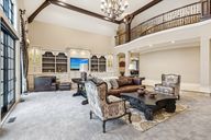 Resort like poolGenerous islandLandscape poolCoffered ceilingRec roomGuest suiteHandsome library