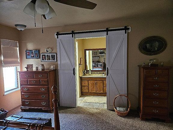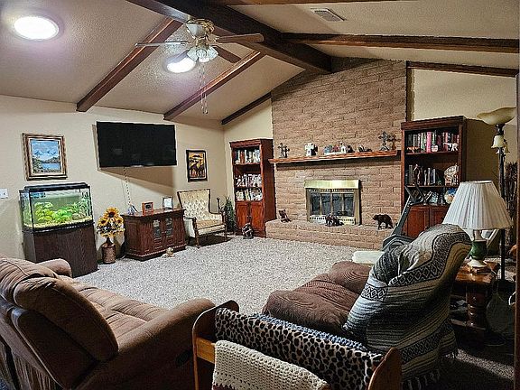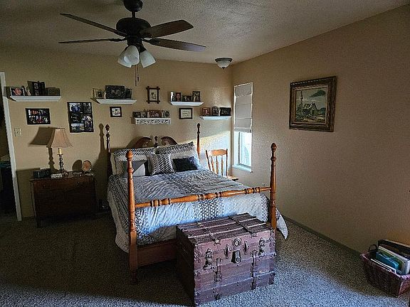 This comfortable home is located in a quiet neighborhood close to Yeso Elementary School. Spanning 1806 square feet, the residence boasts a spacious master bedroom along with two additional bedrooms with large walk-in closets. The family room has vaulted ceiling and sky lights and a fireplace. The open layout connects to the kitchen/dining area. Additionally, there is a sun room just outside the sliding glass doors. A utility room contains your washer/dryer hookups and storage. This dwelling also includes a sizable storage shed. Privacy is ensured by a cinder block fence. Both yards have underground sprinkler systems. The attached garage provides abundant storage possibilities. One of these storage areas houses a hot water heater and water softener.