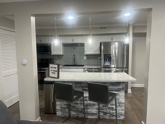 Beautifully Updated End Unit Townhome - Move-In Ready! Welcome to this bright and spacious end-unit townhome offering 1,174 sq. ft. of comfortable living space. This freshly painted, two-story home features an open-concept main level perfect for entertaining and everyday living. The kitchen features new stainless steel appliances, ample cabinetry, and a convenient layout that flows seamlessly into the dining and living areas. Upstairs, enjoy two generously sized bedrooms, including a recently renovated main bathroom with modern finishes. Additional highlights include central air and heat in unit, Gas and water included in HOA and abundant storage - two exterior storage spaces plus an interior storage room. Located in a well-maintained community offering fantastic amenities: an outdoor pool, clubhouse, parks, walking path, and a scenic pond. HOA fee covers the following: Gas, Water, Waste and recycling services, Lawn care, Snow removal, Exterior maintenance, Parking (2 parking spots), Clubhouse, Pool, Playgrounds Conveniently situated between I-355 and I-55, this home provides easy access to shopping, dining, and commuting routes. Schools: Meadowview Elementary (K-6) - 0.7 mi Thomas Jefferson Jr. High (7-8) - 0.7 mi South High (9-12) - 1.8 mi Don't miss this opportunity to own a beautifully updated home in a prime location - schedule your showing today!