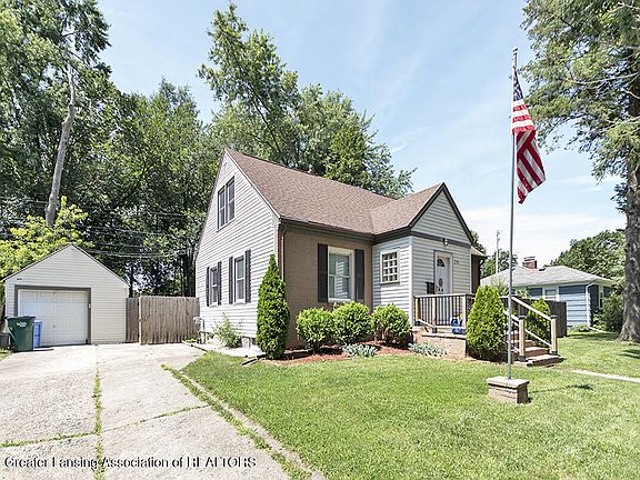 This charming Cape Cod home has everything you are looking for and so much more Located on a double lot in the quiet, well established Scotts Woods neighborhood in Lansing, you will be just minutes from downtown. Note the fabulous curb appeal and fully fenced back yard as you pull up. Enter the home from the front porch into the vestibule with matching coat closets on each side. The spacious living room is flooded with natural light that highlights the hardwood floors and includes the open dining area. The kitchen has been beautifully remodeled with a deep farm sink, granite counters, tile backsplash, a gourmet gas range with double ovens and stainless steal appliances.