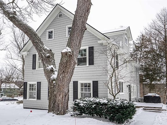 Surrounded by towering pines, this circa 1930 Colonial is picture perfect. Original hardwood floors throughout the first/second floors. Formal dining room with built-in hutch, high ceilings and large windows. Spacious living room with wood burning fireplace is adjacent to updated family room with walls of windows and updated half bath. Beautifully remodeled kitchen has concrete countertops, 42 cabinets, new stainless appliances, double oven and pot-filling faucet above gas range. New mud room area, too! Second floor hosts full guest bath and 3 bedrooms including master suite with new full bath. Charming sun room off master suite with gas wall furnace and beautiful views of the neighborhood. The third floor is a teenagers delight! Two bedrooms and a new full bath, hardwood floors and ample closets and storage. All this sitting on .37 acres with mature trees and perennials. 2-car detached garage, large patio, front porch. Only a short walk to Angell and Tappan schools.
