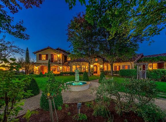 The main home, designed for gracious living and entertaining, is approximately 6,700 square feet with an open plan kitchen, dining and living room, 4 bedrooms, 4.5 bathrooms, and an office. The ground level features a large family/media room, bonus room, tasting room and wine cellar, all ideal for entertaining. The guest house is approximately 1,200 square feet, featuring an open plan kitchen, dining and living, two bedrooms, and one bathroom. Outdoor living will not disappoint, with an open-air kitchen, pizza oven, dining patios, swimming pool, bocce court, fruit and olive trees completing this luxurious estate.