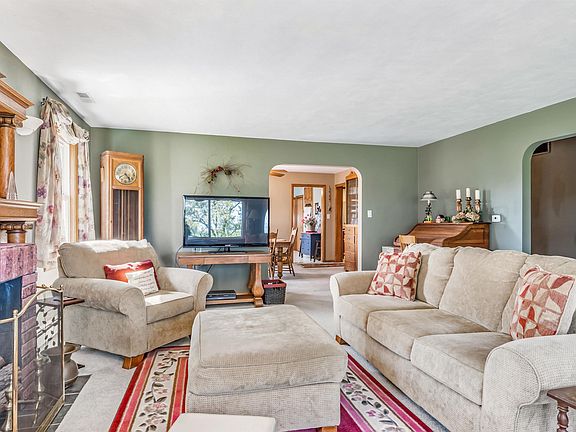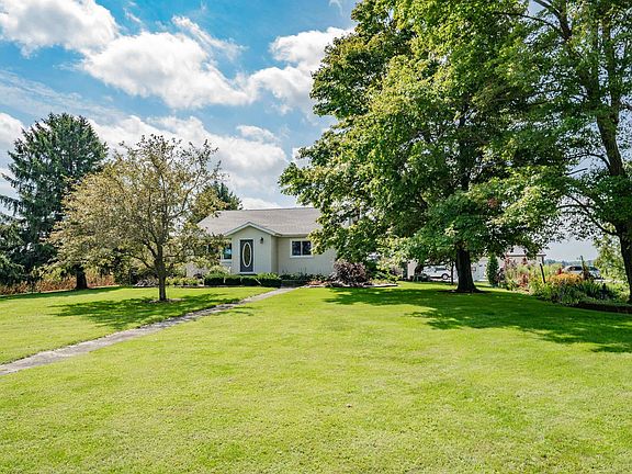 Rural living at its finest on this 3.4 acre, wonderfully manicured property! Fall in love with this country retreat offering over 2000 sq/ft of living space and a full basement. The primary floor offers a gracious living room, bathed in light from the wall of windows, and charming fireplace, a spacious dining room w/artisan built-in/china cabinet and a tastefully remodeled family room w/new flooring, modern & neutral paint colors, newer windows and floor to ceiling brick fireplace. Three bedrooms w/beautiful hardwood floors, 1.5 bathrooms, fantastic built-in in hallway and mudroom area finish off your main floor. The full basement has been completely waterproofed, has a great workshop area and both freezers are included. The serene outdoor space is amazing w/lush landscaping, stone patio w/pergola, massive garage, historic garden shed (built in 1914), huge 4,860 sq/ft barn, a 1,728 sq/ft barn and expansive green spaces. A rare opportunity to enjoy maximum privacy on a lovely property!