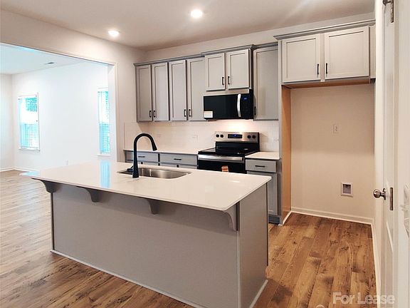 GORGEOUS brand new townhouse, walking distance to Camp North End and very easy access to Uptown. Light filled home with fully fenced in back yard and over 2000 SF of welcoming living area! Kitchen perfect for entertaining with large center island, new stainless steel appliances (refrig, stove, dishwasher, microwave), tile backsplash, quartz countertops and separate dining area, all opening into large family room. Flooring is beautiful wood-look luxury vinyl plank through downstairs and upstairs; bathrooms are tiled. Office with french doors on first floor, large drop zone with hooks and seating niche, half bath and lots of storage space. Second floor has large primary bedroom with beautiful tiled walk-in shower and double sink vanity w quartz countertop and huge walk-in closet. Full hallway bathroom has tub/shower combination and double sink vanity with quartz countertop. Third bedroom also has walk-in closet.