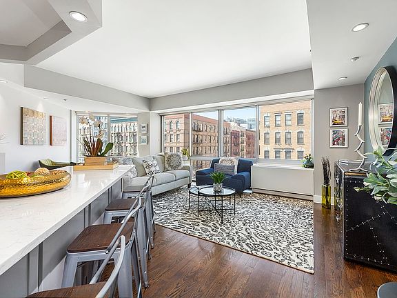 Now available 1240 square foot, sunny 3 bed, 2 bath condo with spectacular south/west views and a peek of Saint John the Divine. Be prepared to be wowed by its expansive, architectural layout with 9-foot ceilings, sun drenched floor-to-ceiling windows, gorgeous light and oak floors. The newly renovated open kitchen is a cook’s dream with stainless steel appliances, built in wine cooler, custom cabinetry and a large island perfect for entertaining. The kitchen flows well into the large, airy living and dining room with a wall of windows sending in beautiful light. The hallway leading to the bedrooms gives a nice feeling of separation from the main living area and the 3 bedrooms are neatly tucked away. The serene main bedroom has a walk-in closet and lovely oversized windows. There is an additional closet built into the bedroom for ample storage. The ensuite main bath features a marble-topped double vanity with Kohler fixtures, tons of storage space and a frameless glass-enclosed Toto shower. The other two bedrooms are large enough to fit queen size beds. The secondary bathroom has a spacious Toto tub with polished chrome fixtures and an oversized mirror. There is also the convenience of a vented washer/dryer in the apartment. Included with the unit is a separate 9 foot storage locker in the basement.