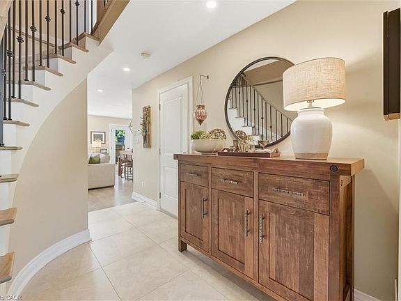 Welcome to this beautifully updated End-Unit townhome in sought-after Headon Forest. Perfect for the busy professional or those looking to downsize. This home combines timeless style, modern upgrades, and maintenance-free living just minutes from parks, shops, restaurants, and major commuter routes. Step inside to discover a fully renovated kitchen with an elegant extension featuring granite counters, gas cooktop, built-in oven/microwave combo, range hood, bar fridge, and under-cabinet lighting designed for entertaining and everyday ease. The open-concept main floor offers refinished hardwood floors, modern pot lighting, California shutters, and an inviting dining and living area that opens to a private, extended patio with upgraded stonework and a natural gas line for outdoor cooking. Upstairs, you’ll find three spacious bedrooms with new hardwood throughout, a spa-inspired main bath with stand-alone soaker tub, and a renovated two-piece powder room on the main level. Attention to every detail, updated interior doors and hardware, upgraded ceramic tile, a custom stair runner, all new exterior windows, doors, eaves and downspouts, plus patio doors with glass-enclosed blinds. Enjoy the convenience of two-car parking in the driveway, ample visitor parking nearby, and the peace of mind that comes with a maintenance-free exterior. This exceptional property delivers style, substance, and a prime Burlington location move right in and start living!