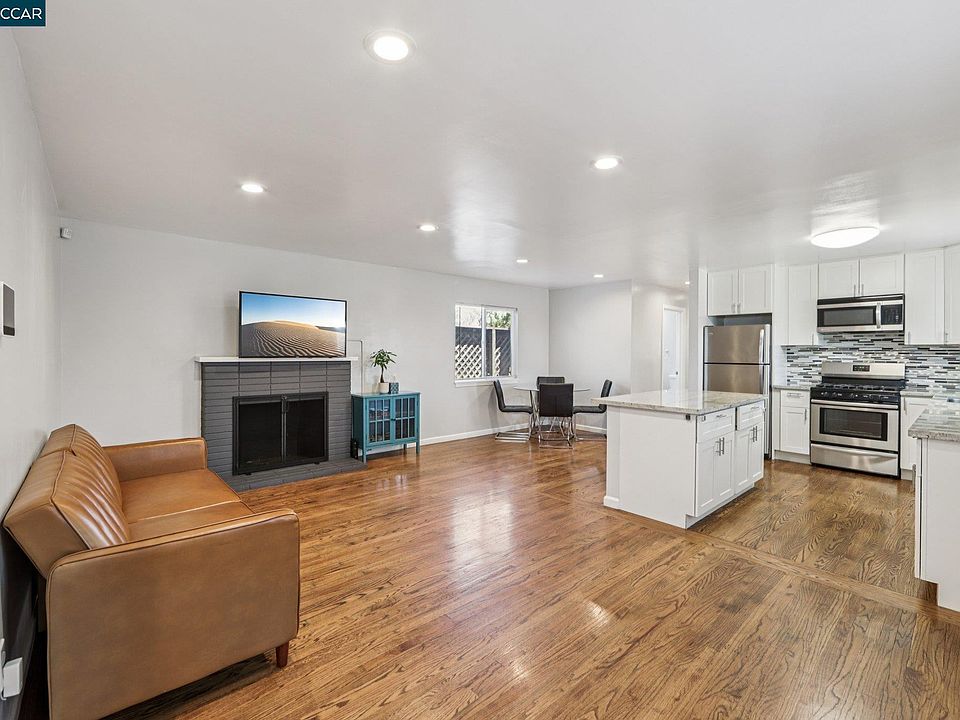 Price Improvement! Welcome to your beautiful two-story sanctuary in the heart of Richmond! This meticulously maintained single-family home boasts 3 spacious bedrooms and 2 full updated bathrooms, perfectly blending modern updates with timeless character. The generous 1,278 sq ft floor plan features gleaming hardwood floors, tile accents, and abundant natural light pouring through updated windows. Retreat to the private primary suite on the second floor, complete with a cozy colored flame gas fireplace—a perfect spot to unwind—and a beautifully updated primary bathroom. Updated kitchen with quartz countertops, backsplash to match, roomy island ideal for entertaining and gatherings. Nestled on a 2,500 sq ft lot, low-maintenance yards with newly installed fence in backyard. Off-street parking for convenience. Step outside and you’re just a short stroll to vibrant 23rd Street’s vibrant shops and restaurants, immersing you in Richmond’s thriving community. Commuters rejoice: the Richmond Ferry is minutes away, and BART is a one mile from doorstep, making your daily travels a breeze. Experience the perfect blend of charming neighborhood living and urban convenience—this gem is ready for you to call home.