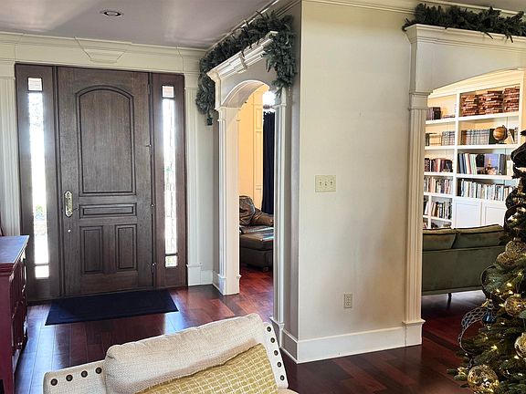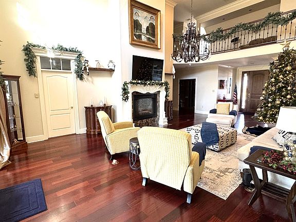 Welcome to this architecturally beautiful home with lots of extras! You'll love entertaining in the large kitchen and living room with cathedral ceiling and overlooking balcony. Situated on the golf course, overlooking the 15th hole, you can't beat the sunsets and sunrises. New outdoor kitchen caps a backyard retreat. Mature landscaping blooms all spring and summer. Enjoy a newly built library and separate office. Jack & Jill bedrooms are linked with a staircase to a bonus room upstairs, complete with secret library. Primary suite has a large walk-in closet All bedrooms including guest suite are on the main floor. New storm shelter included! Tons of storage and a golf cart garage space complete this wonderful package!!
