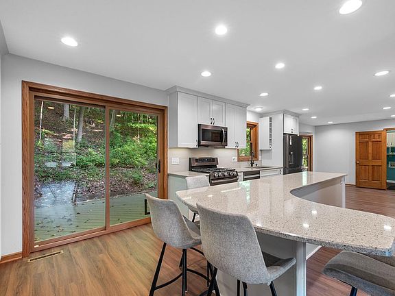 Welcome to 2110 Hollow Circle, where comfort meets style in this 4 bedroom, 2.5 bath home. A high end kitchen with granite countertops and top quality appliances flows seamlessly into the spacious living and family rooms, complete with a cozy fireplace. Main floor laundry adds convenience, while the newly finished rec room offers endless possibilities for work or play. Retreat to the private master suite or entertain with ease inside and out. The 3 car garage provides ample storage. Across the street, enjoy a private neighborhood lake perfect for canoeing, fishing, and peaceful evenings by the water. A rare blend of luxury, function, and lifestyle awaits in this sought after West Bend.