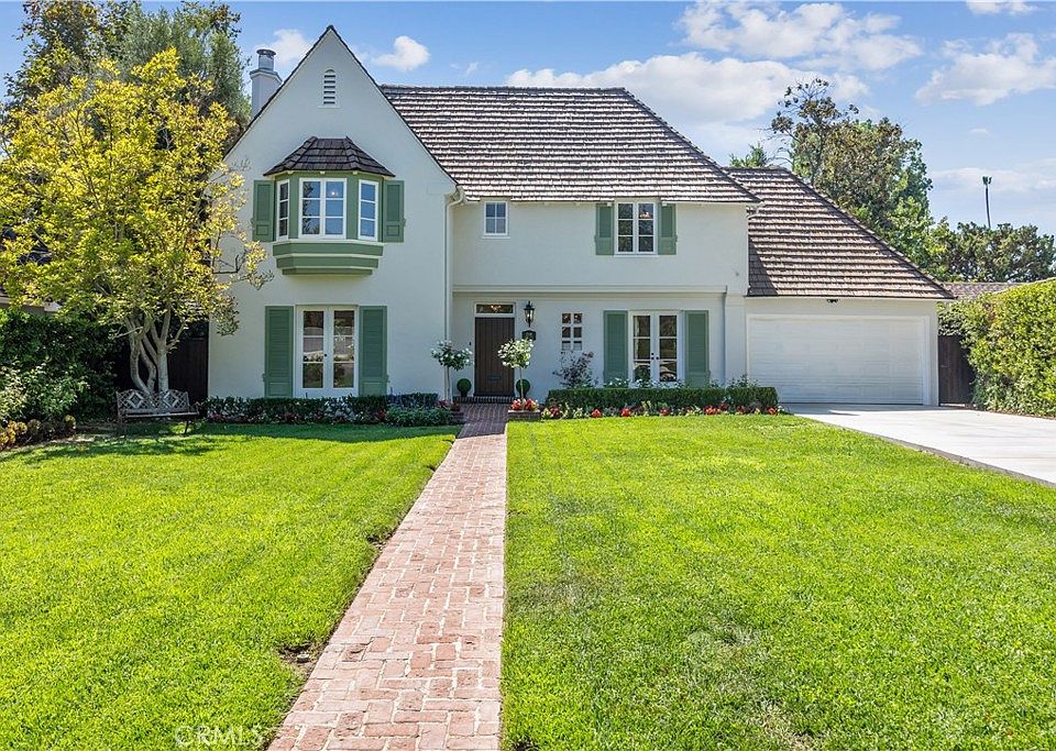 Grand fireplaceAttached two-car garageMature treesFrench normandy-style homeCalifornia basementManicured gardensOpen spaces