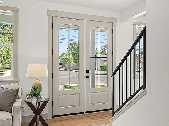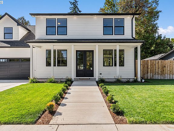 Enjoy the peace of mind that comes with brand-new construction in a welcoming, well-established River Road neighborhood. This ultra-custom, tricked-out home has 3 bedrooms, 2.5 bathrooms (plus an office & bonus room!), nearly 2,000 sqft on a .17 acre lot. Step through double doors into a sun-drenched living room with a cozy gas fireplace and chic mantel. The main-level den/office offers a quiet corner, perfect for working from home. The kitchen is a showstopper, with waterfall quartz countertops, stainless steel gas range and dishwasher, walk-in pantry, and breakfast bar. Upstairs, the bonus room can be anything you want: media space, play area, crafts & hobbies, yoga room, or a second hangout. The primary suite is extra fancy, with two walk-in closets and a spa-inspired tile shower. Slide off the dining room straight into the backyard- yes, the indoor/outdoor flow is on point! Enjoy a large backyard with an earth-friendly rain garden and green space views. No carpet, indoor laundry, RV parking potential, and plenty of extra storage make everyday living fun again. Conveniently located between the NW Expressway and Beltline for easy commuting, and just minutes from the brand-new North Eugene High School, shopping, and dining. With efficient systems, stylish finishes, and a worry-free lifestyle, this custom home can be enjoyed just how it is for many years to come.