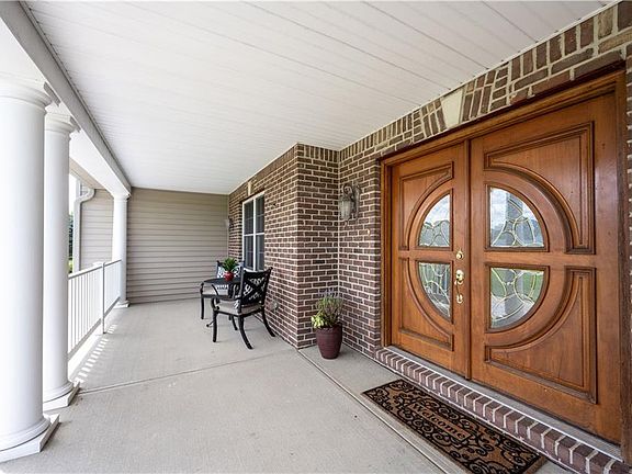 Large two-story home w/views, 3-car garage, basement on gorgeous 10 ten acres. Beautiful home w/5 bedrooms, 6 baths. Huge front porch! Main: formal dining room, office/den, kitchen with high-end stainless steel appliances, center island, command ctr area, breakfast nook, family room, complete business office w/bath or in-law quarters w/sep entrance to home, next to Laundry. French doors lead to expansive newer deck overlooking this gorgeous 10-acre property w/4 acre woods! Up: Spacious Master Suite w/views, sitting room (or workout area), large master bath w/walk-in shower, sep tub, water closet & 2 sep closets, 3 additional guest rooms w/each full baths! 2,000 sqft unfin bsmnt, used as storage. Wired for security & sound systems.