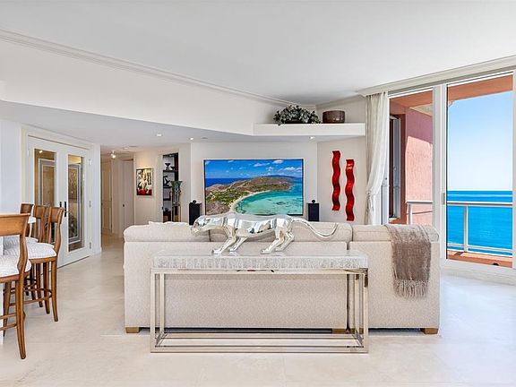 Floating on the 24th floor, this stunning sub-penthouse, beautifully decorated East Florence floor plan at The Palms offers breathtaking wraparound views of the ocean from every room. A flow-through