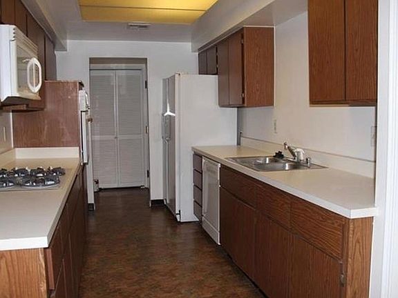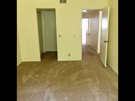 Very large open condo located in quiet neighborhood. The condo comes with refrigerator, washer, dryer, dishwasher, and central heating and ac. Large master bedroom with en suite that has a shower and bathtub. The master has two closets, one of which is a walk-in. Balcony off the master. Second room has a bathroom and two closets. Fireplace and wet bar in the living room and large pantry in the kitchen. The property also includes two covered parking spots and an additional 200 sq ft of secure storage area. There is a pool and clubhouse with a full kitchen on the property and walking trails adjacent to it. Water and trash paid for by Owner.