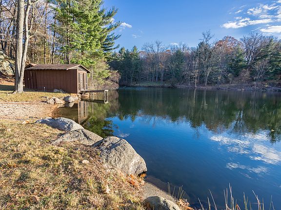 Masterfully renovated in 2012, this sophisticated Mid-Century Modern home offers oversized interior and outdoor spaces with house length terraces, ideal for entertaining. The soaring entry leads to an expansive living room with fireplace and dining room, both with floor-to-ceiling glass walls and doors leading to the stone terrace, deck and lawn. An open concept gourmet kitchen flows right into the family room and is the true heart of the house. Also included on the main floor is a sought-after private 2nd Master/ Guest Suite with full bath, a library with a wood burning fireplace and a gallery hall with rows of windows, plus a home gym. The master suite has a screened-in porch, large walk-in closet and spa-inspired bath. Additional 4 bedroom wing. Scenic views of your private lake with boat house. Rolling lawns are framed by wooded surroundings that create the perfect getaway; enjoy fishing & kayaking. 1 hour from mid-town Manhattan to your front door!