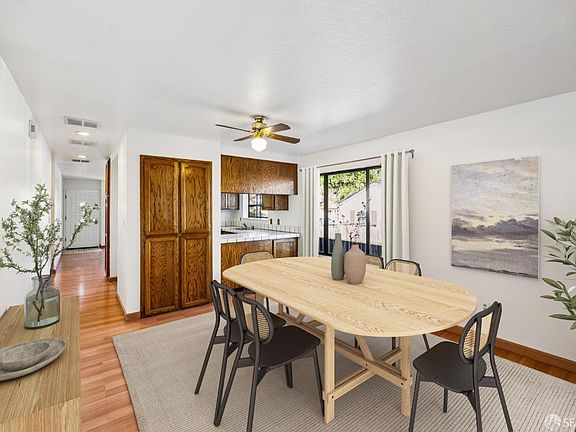 Desirable Hillcrest Knolls location in the San Leandro hills with nearby neighborhood park and easy freeway access. Built in 1987, this home has 3 bedrooms, 2 bathrooms, and a large enclosed side porch. Fenced rear yard with detached shed has electric so would be perfect for shop/art/crafts, or even office. Attached two car garage has laundry and driveway could accommodate Boat/RV or 3 additional vehicles. Additional street parking available in front of the home along the fence. Some of the photos are digitally enhanced with virtual staging.