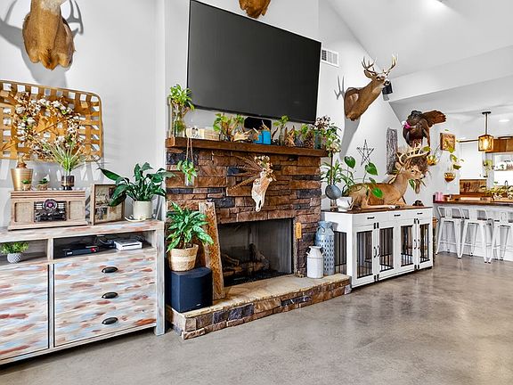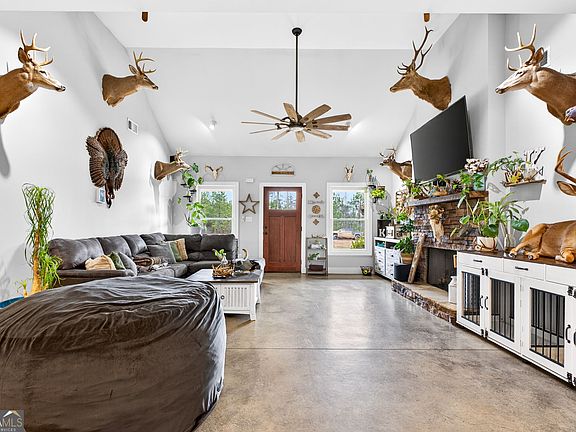 Beautiful 3-year-old home situated on 20 acres offering peaceful country living. This well-maintained 4-bedroom, 2-bath home features stunning concrete floors, a split bedroom design for added privacy, and inviting secondary bedrooms. The master suite includes a zero-entry walk-in tile shower. Spacious kitchen and dining area showcase custom butcher block countertops, perfect for everyday living and entertaining. The property offers a desirable mix of open and wooded acreage with a flowing creek that provides a reliable water source for wildlife or future horses and cattle. Ideal as a private hunting retreat, peaceful homestead, or place to raise horses and livestock. Numerous custom updates throughout, including a covered outdoor living area with expanded patio and fire pit. Perfect property for deer and turkey hunters.