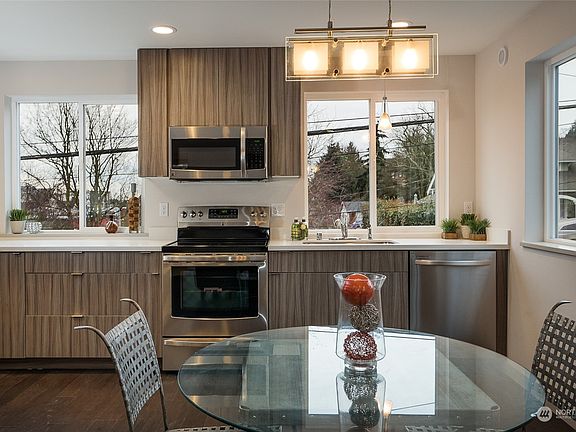 This stunning like-new 4-Unit modern complex was built in 2015 & showcases beautiful city & territorial views. Units include bright interiors, designer kitchens w/quartz counters, flowing hardwoods, under-mount sinks & Canyon Creek Cabinetry. All 4 units leased in 2023+2024 have Ductless AC/heat, hot water tanks, private washers/dryers & kitchen appliances. Currently 3/4 units leased, unit 2 staged for showing! Enjoy a video intercom secured entry & fire sprinklers. Terraced patios for year-round fun. Main level 2 bedroom work/live w/front flex space. 2nd floor 1 bedroom & 2 bedroom units. 3rd floor 3 bedroom penthouse. An unbeatable location in the heart of it all, close to the popular Burke Gilman Trail, shopping dining & more!