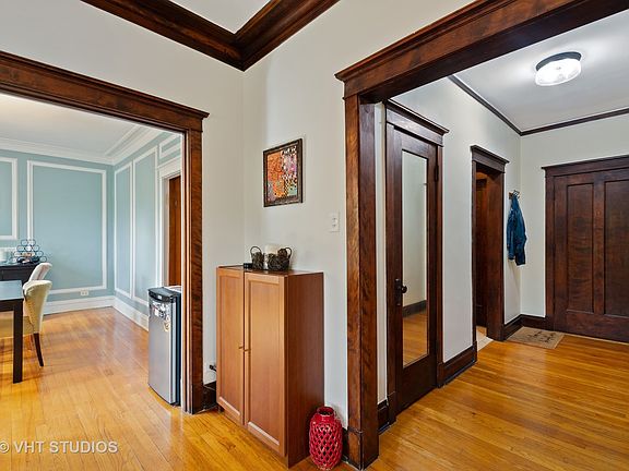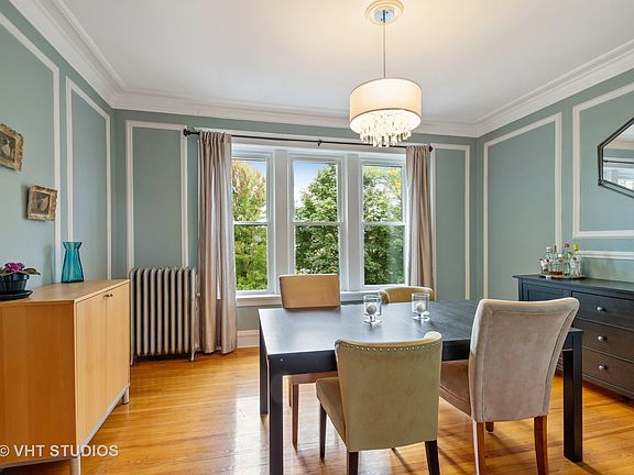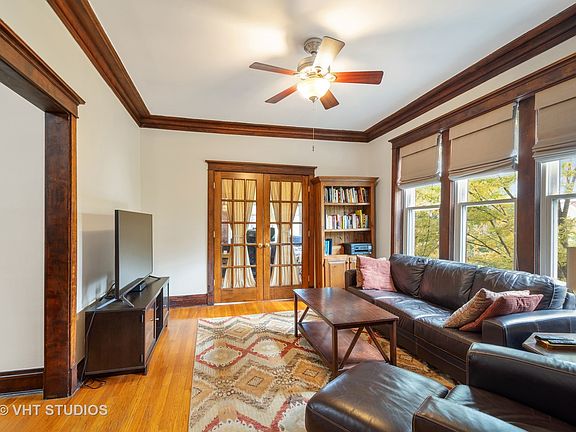 Bright and sunny top floor corner condo in this phenomenal location is the perfect place to call home! The lush courtyard welcomes you to the property which features hardwood floors throughout, crown molding, original built-in, and tons of character. Large granite and stainless kitchen lead to the back deck. Separate south-facing dining and living rooms make for easy living and entertaining. Brand new stone and tile bath, washer/dryer in unit, and extra storage round out this impressive condo! Walk to all Ravenswood, North Center, and Lincoln Square has to offer. Close to Train, grocery, parks, and more. Truly a 5-star location. Easy street parking or rental options in the area.