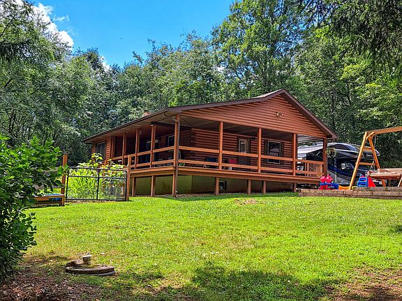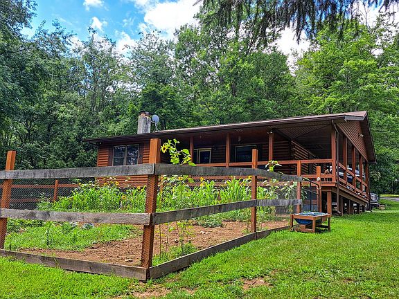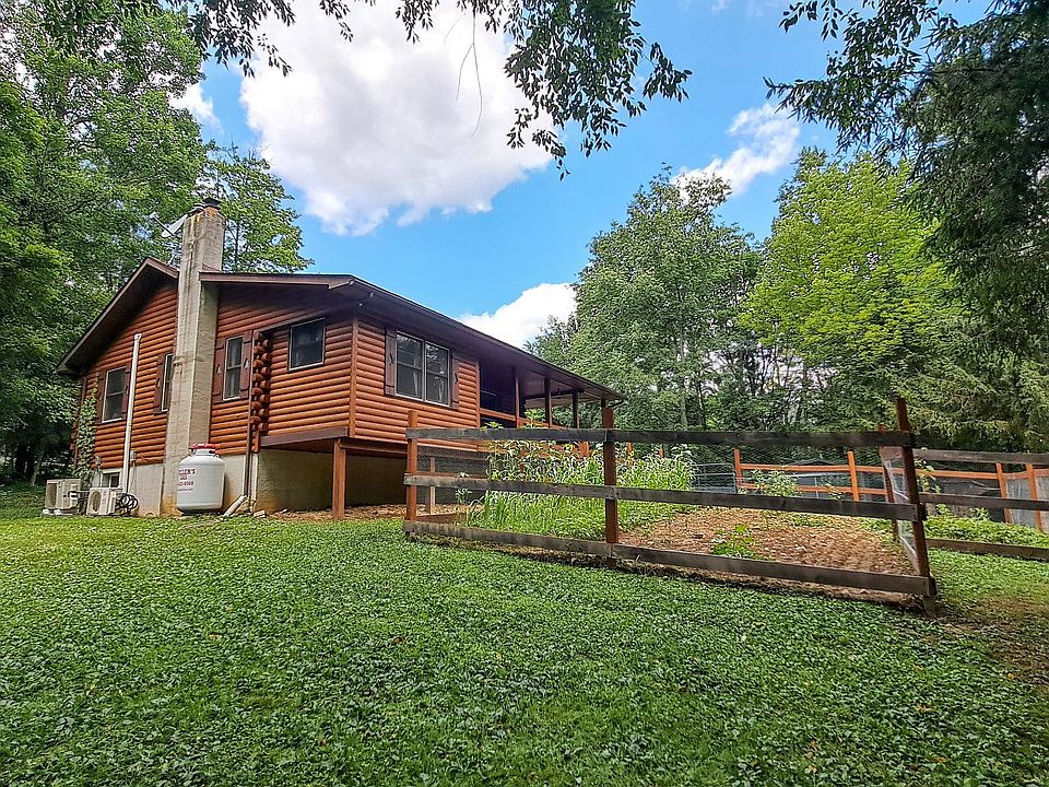Nestled in the quiet and wooded Locke Valley Subdivision of Huntingdon County, this charming log cabin offers a peaceful second home or getaway. Surrounded by mature trees and natural beauty, the property includes a well-maintained log cabin, a stunning two-story Amish-built 28' x 42' mortise and tenon hemlock barn with a 10-foot lean-to, and a 16' x 16' metal utility shed for additional storage and an RV hookup for additional capacity. Inside the 1,550-square-foot structure, you'll find 912 square feet of finished living space on the main floor, featuring a warm and welcoming living room with cathedral ceilings, wood finishes, and a gas log stove. The home includes two bedrooms with easy potential to convert to a third and a full bath on the main level. The kitchen is spacious and open for casual dining, and the partially finished 22' x 29' basement includes laundry, utility space, and walk-out access for added convenience. The home is equipped with multiple heat sources, including propane, a wood stove, and two ductless mini-split systems for heating and cooling. Other updates include a newer architectural shingle roof, insulated doors and windows, and energy-efficient systems. The detached garage offers oversized doors, covered parking, and off-street gravel access. Outdoors, enjoy the serenity of the covered front porch or relax on the rear deck with wooded views. The land is partially fenced with split rail and features level to gently sloping terrain, which is ideal for horses or recreational use. This property is located just 10 minutes from the historic East Broad Top Railroad and 40 minutes from several access points to Lake Raystown. It’s also within reasonable driving distance to Harrisburg, State College, Lancaster, Baltimore, and Pittsburgh. Whether you're looking for a private retreat, a hunting base, or a country home with charm and space to grow, this is the property for you. Shown by appointment only.