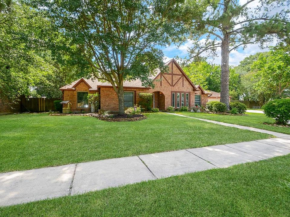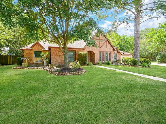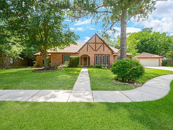 DID NOT FLOOD! Gorgeous, fully updated 1-story situated on a lot & a half, tree-lined cul-de-sac. From the moment you enter, you know you at truly home. Wood Plank Tile floors & high ceilings flow seamlessly throughout. Entry has beautiful double French Doors leading to the Formal & Family Room. The Kitchen offers soft close cabinets, stainless appliances, glass tile backsplash & granite counters & recessed lighting. Huge closets in all bedrooms, as well as ceiling fans & upgraded lighting. Family Room is HUGE & has a stacked-stone fireplace. Master bath fully updated w/double sinks, granite counters, seamless shower surround & custom tile. Double Paned windows & newer HVAC system (6/2018) make this home energy efficient too. New Roof 12/2021! 2" blinds throughout. HUGE covered Patio & outdoor kitchen w/amazing landscaping incl. a koi pond w/waterfall & sprinkler system in the front & artificial turf in back for easy maintenance.