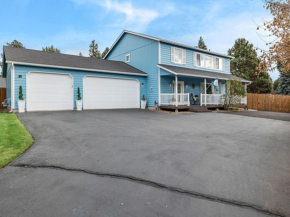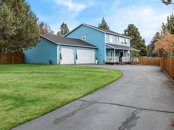 Nestled within a private cul-de-sac on a functional half acre, this home has been meticulously renovated and updated with modern inspired design elements. A thoughtful reverse living floor plan offers a spacious and bright upper level with beautiful cascade mountain views and provides cool summer evenings and easy accessibility for the lower level bedrooms. A completely redone kitchen features quartz counters and an adjacent flex space that would make a perfect office or massive dream pantry. Step outside into the expansive, fully fenced and level backyard, complete with RV parking and storage shed. A new furnace, freshly painted ext/int, new modern light fixtures, walk out back patio, and an elegant and modern ultra wide electric fireplace are just some of the newly added elements of this home. Lightly lived in and always maintained - this rare SE Bend home is close to trails leading to High Desert MS and just mins away from the new Caldera HS and 37-acre Alpenglow Park.