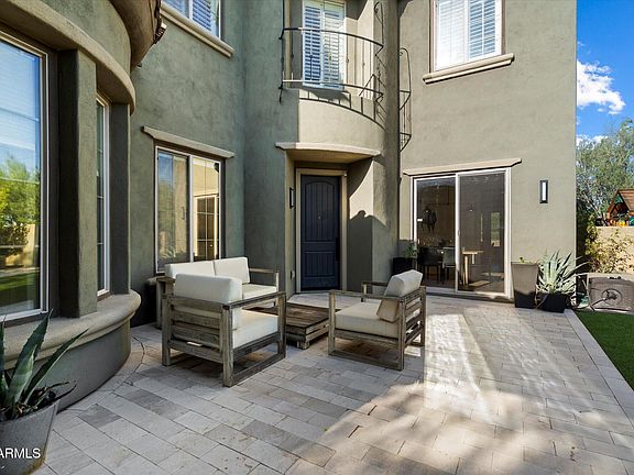 Beautifully situated on a cul-de-sac lot with expansive open space, this home offers both privacy and charm. A stunning gated courtyard entry welcomes you in, setting the tone for the elegance found throughout the property. Step inside to a spacious great room with soaring, creating an open, airy feel perfect for both relaxing and entertaining. The kitchen features sleek quartz countertops, a large island with seating, an eat-in dining area, and premium GE Monogram stainless steel appliances. You'll also find a formal dining area with a built-in bar, ideal for hosting. The primary bath is a true retreat, featuring a lighted double sink vanity, a soaking tub, and a beautifully tiled walk-in shower. The backyard is perfect for entertaining.. boasting a large covered patio, a sparkling pool with a water feature, built-in BBQ, artificial grass turf, and view fencing with no rear neighbors for added privacy. Residents enjoy access to a resort-style community center that hosts a variety of events and activities for all ages. Amenities include a rentable clubhouse, a fully equipped fitness center, two pools, a spa, tennis and sports courts, and a playground. Plus, there are miles of beautiful walking and biking trails alongside scenic parks. Perfect for outdoor enthusiasts and families alike!