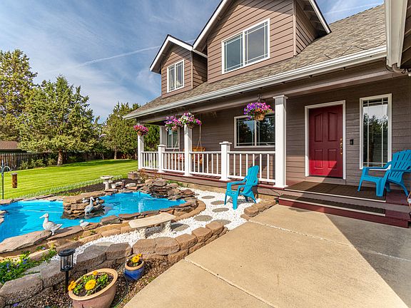 SE Bend, quiet cul-de-sac gem on nearly 1/2 acre! One-owner home with fabulous floor plan and room for all your toys! Welcoming front porch overlooks expansive yard and tranquil water feature. Just inside you'll find beautiful oak floors extending throughout the lower level. Front office with french doors looks out to porch. Vaulted living room with fireplace sits just off the open kitchen and dining area with windows and door to yard. Huge kitchen island with granite countertops, pantry, and stainless appliances. Primary bedroom located at other end of lower level boasts large closet and original yet pristine ensuite with jetted tub. Upstairs the loft/bonus space overlooks the neighborhood with views of Mt. Bachelor! 2 bedrooms and a bathroom complete the upstairs. Back patio is sunny in the mornings and shady in the eves - private for hot tubbing, too! Extra deep 3 car garage fits full size truck w/8ft bed. Huge RV cover with paved access and gate. What more could you ask for?!