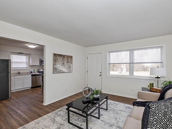 This newly renovated 2-bedroom, 1-bath duplex features an open-concept kitchen equipped with brand new appliances, including a refrigerator, stove, microwave, and dishwasher. The kitchen also boasts hard surface countertops. The spacious living room and bedrooms can comfortably accommodate a queen-sized bed. Nestled in a quiet neighborhood with mature trees, private parking, and ample yard space, this home offers a serene country setting. Located in Perry Township, this home is available for rent. Professionally managed by Hometown Property Group, LLC.