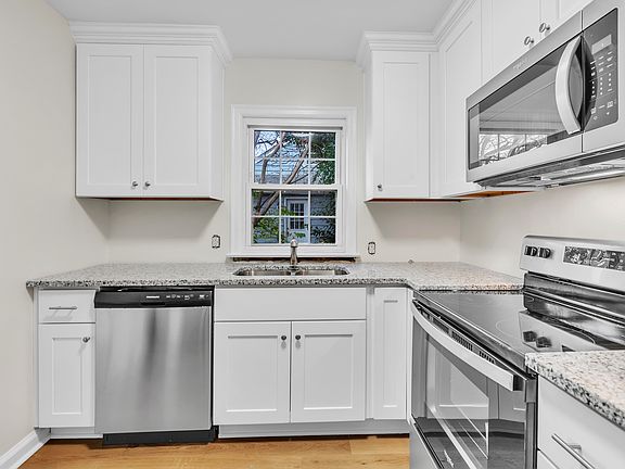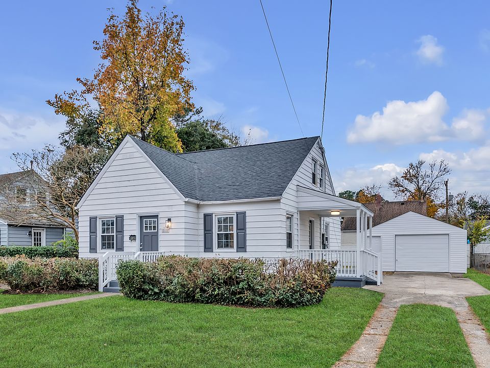 AVAILABLE NOW! Charming cape cod with all the upgrades! This move in ready home features 4 spacious bedrooms and 1 upgraded bathroom with custom tilework and new vanity. Beautiful wood grained vinyl plank flooring in both downstairs bedrooms and living area, leading to the updated kitchen with new SS appliances, granite counters, and white shaker cabinets. Upstairs you will find 2 additional bedrooms with new carpet and light fixtures. Bonus, the stairs in this home are not your typical norfolk stairs where you have to duck! Outside you will find your oversized driveway leads back to your detached garage and backyard, complete with a side porch! Call today!