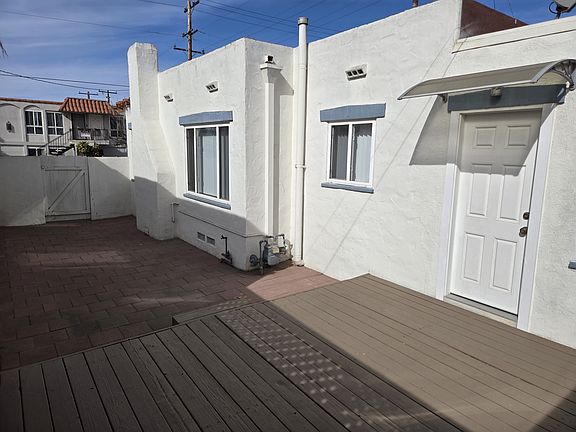 This beautiful, standalone Spanish-style home is bathed in natural light, creating a warm and inviting atmosphere. The lot is not shared with other homes, offering complete privacy. Enjoy the fresh feel of a newly renovated interior and the unbeatable location just a short stroll from the sand! * Beach Living: Only 3 blocks away from the beach! * Fresh Paint: New interior paint throughout. * Kitchen: Brand new stainless steel appliances * Stylish Flooring: New luxury vinyl and porcelain tile flooring, along with new carpeting for added comfort. * Updated Bathroom: New vanity, toilet, refinished tub, and medicine cabinet. * Energy Efficiency: Dual pane windows throughout the home. Relax and unwind in the fully enclosed yard, complete with a private outdoor patio and redwood deck perfect for entertaining or enjoying quiet evenings. Additional features include a washer/dryer and laundry sink in the small garage that can be used for extra storage including bicycles, motorcycles, surfboards. Parking for cars on street only. Rent includes gardening and trash service! No pets or smoking allowed. Gardener and Trash Landlord paid for. All other utilities paid for by tenant.
