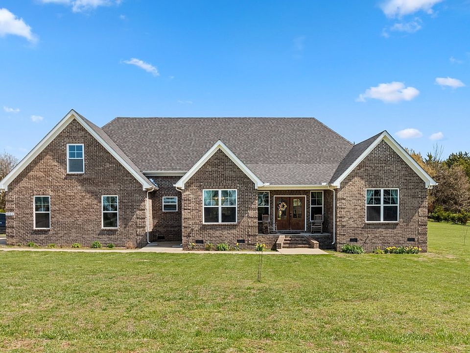 Immaculate and quality full brick beauty! Highly desirable small establish neighborhood with spacious yards! Lovely 1.66 acre level lot with privacy, fruit trees, and backs up to a wooded area! Built December 2018, 2359 sqft modern open floor plan, 3BRS/2.5 Baths, high ceilings, lovely fixtures, granite with loads of cabinets/coutertops/bar-area/tile backsplash/NEW digital microwave, large14x17 primary bedroom and lovely big bath w/his/her vanities, tile shower/floor, 8x9 walk-in closet plus a 3x4 closet, New walk-in pantry w/wood shelving, big utility,17x22 family room, and separate dining room. Stairs in the hall lead to the 406sqft bonus room/office/exercise room/office/4th BR. Wait until you see the covered back porch and added over-sized back patio!! Great for family and entertaining. Double garage with built in shelves, closet, and walk-out side door. NO HOA! Quiet location with easy access in any direction! This is fine living and move in ready!