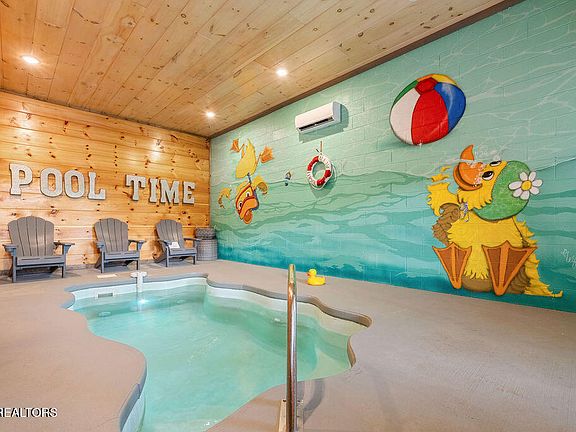 This 3-bedroom plus bonus room cabin is a proven income producer, generating $83,998.71 in gross revenue for 2024! Guests love the private indoor heated pool highlighted by a stunning professional mural, along with a hot tub, arcade loft with skee-ball, and a game room packed with 20,000+ retro games. Outside, unwind around the campfire pit, challenge friends at the outdoor pool table and corn hole, or fire up the park grill for patio dining. Soak in the beauty of the Smokies while enjoying mountain views from the deck, offering the perfect backdrop for morning coffee or evening sunsets. With parking for 3 vehicles, sleeping space for up to 12, and easy access on smooth roads close to Soaky Mountain Waterpark, this property delivers both convenience and appeal. Whether you're searching for a high-performing STR or your own Smoky Mountain retreat, this cabin checks every box. The combination of views, amenities, and location makes this a must-see opportunity!