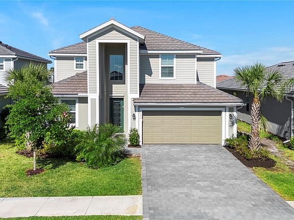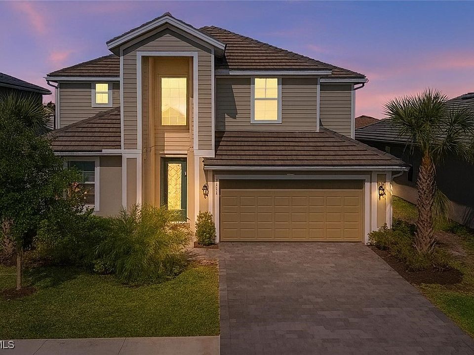 The home features soaring 20-foot ceilings at the entry, a bright and open floor plan, and beautiful rear western exposure with long lake views and spectacular sunset skies over the water. Perfect for entertaining or everyday living, this Naples lakefront home combines elegance and functionality. Orange Blossom Ranch is a premier gated community offering resort-style amenities including two pools, spas, a fitness center, tennis, pickleball, basketball, volleyball, fishing pier, and playgrounds. With water views, luxury finishes, and unmatched value, this waterfront property in Naples delivers the Active Florida lifestyle at an incredible price!