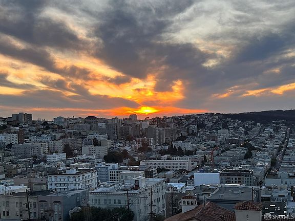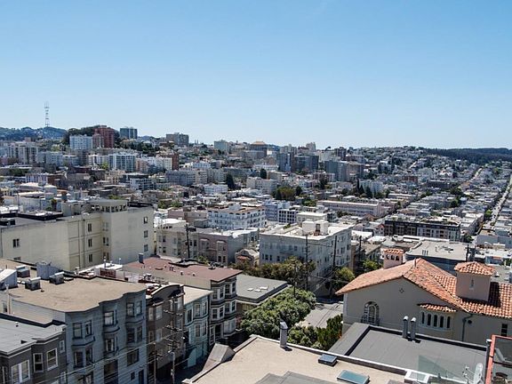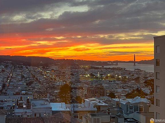 Reduced - Priced to Sell! Delight in breathtaking views spanning SF's dramatic topography, the Bay, the GG Bridge, the Presidio and Marin hills! With the world at your feet, enjoy the bounty of beautiful sunsets, the flow of the fog over the bay and Fleet Week festivities from your very own home! Unit #505 is a quiet, west-facing unit that offers tranquility while being in the heart of vibrant Russian Hill. Bathed in natural light, the generous living room is appointed with beautiful architechtural details- bay w/large window, custom built-ins, recessed lights, wood burning fireplace. Adjacent formal dining room is equally gorgeous-the ideal setting for a casual family meal or a lavish dinner party. Period elements incl. hardwood floors, beautiful frames at windows and doors, crown, picture and baseboard moldings. Kitchen and pantry area feature ample white cabinetry, Silestone counters, gas cooktop, double oven, wine fridge, white subway tile backsplash and in-unit laundry. Gracious primary bedroom suite offers a generous walk-in closet and bathroom with double vanity & separate water closet. Second bedroom also offers an en-suite bathroom. This beautiful property includes an office/bonus room plus a storage room on 2nd floor, courtyard and secure parking for 1 car.