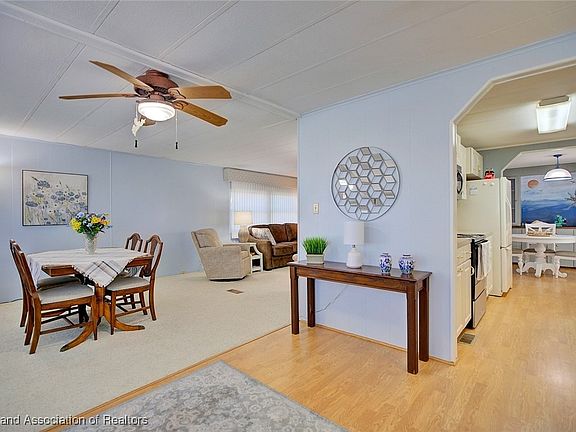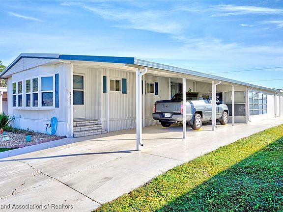Move in ready – light and bright, spacious home with over 1500 sq feet of Air-Conditioned space. Beautifully maintained double wide in sought after 55+ community Wood Haven Estates located in Sebring. It has: 2 bedrooms, 2 bathrooms, inside laundry room, comfortable kitchen, a kitchen nook, large living room, dining room, office space, and a Florida room. The Florida room has A/C which expands the living area. This home also has a workshop and a golf cart garage. The property comes partially furnished and is ready for new owners. Lot rent includes: trash; common areas; swimming pool; bocce ball; shuffleboard; horseshoes; billiards; a library; community laundry facility; and community activities. Rubber Roof was re-coated May 2024. Sold as is, with inspections welcome. The park has additional parking/storage space for boats and trailers – for a fee – space needs to be reserved. Located a very short drive from US Hwy 27. Close to restaurants, shopping, medical & educational facilities. There are numerous championship golf courses in area & great places for fishing or boating and approximately 1 1/2 hours to either coast.