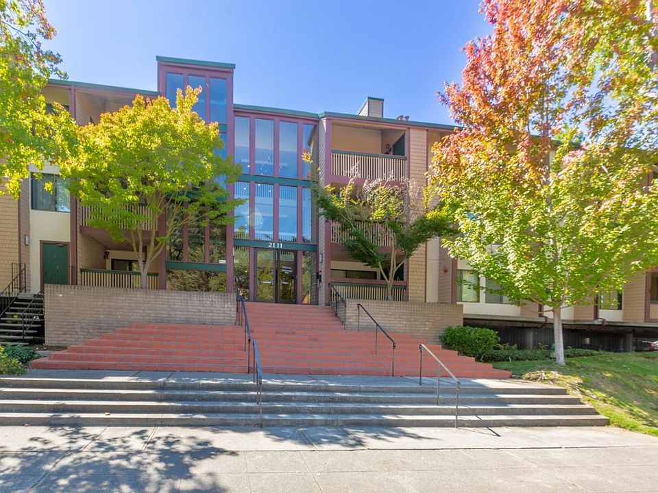 Tastefully updated top floor condo in desirable Woodview complex. Formal entry lead to a large & inviting living room with lush tree top views, laminate wood floors, recessed lighting, gas fireplace with mantle and granite surround plus sliding glass doors to a private outdoor balcony with bonus storage closet. Open kitchen with pantry, recessed lighting, stainless appliances & ample counter & cupboard space. Adjacent separate dining area with designer light fixture. Generous size primary bedroom suite with laminate wood floors, double wall closets with organizer, granite vanity & enhanced tile shower stall with glass enclosure. Spacious guest bedroom that open to the sunlit living space, ideal flexible floorplan for easy day to day living. additional features: Inside washer & dryer, central air conditioning. Well maintained complex complete with swimming pool, spa, bbq area & elevator. Convenient location to The Village shopping center, downtown Mountain View & freeway access.