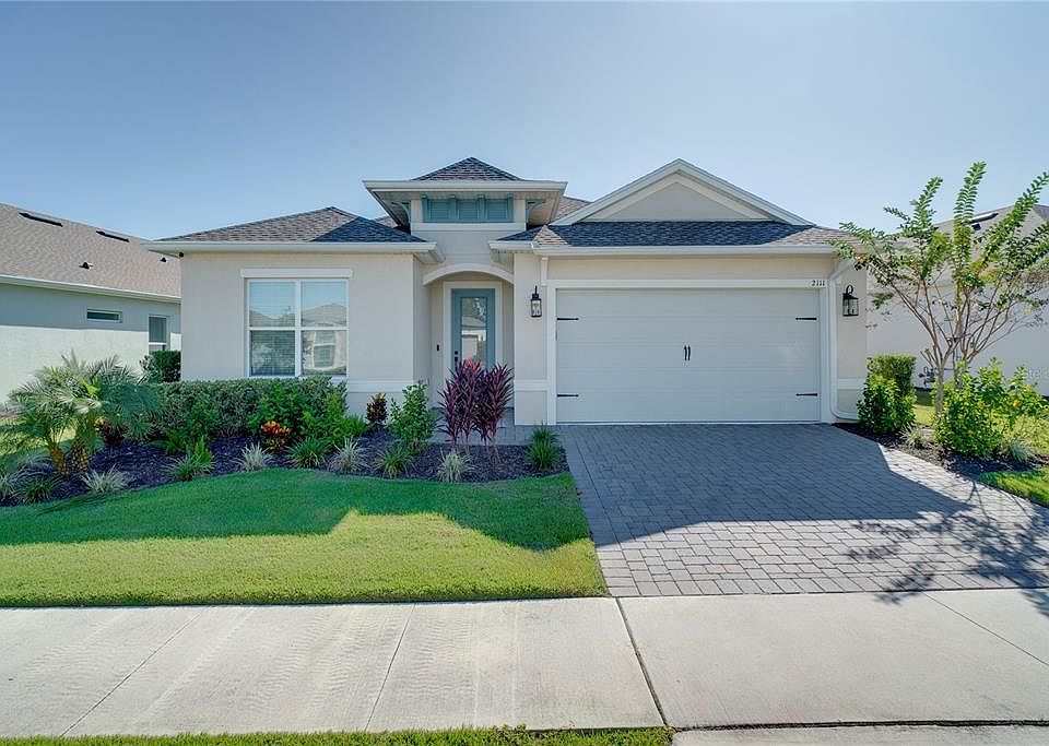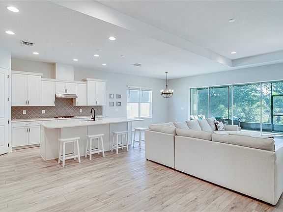 One or more photo(s) has been virtually staged. Four Seasons Orlando is located in Kissimmee just minutes from Disney, world class dinning and offers everything a world class 55+ neighborhood should. This bright and spacious open concept offer 10' ceilings, 42" cabinets and quartz countertops. There is a spacious Primary bedroom and well appointed primary bathroom. All common areas have luxury vinal that is easy to maintain. The community offers 3 pools, tennis, bocce and pickleball courts a crafting room and test kitchen; it was everything you could want! This state of the art clubhouse offers a resort lifestyle for its residents and a full time activity director to keep the party going 7 days a week! The 10' x 16' lanai and 16' sliding glass door make the perfect place to sit back and enjoy the most of beautiful evenings.